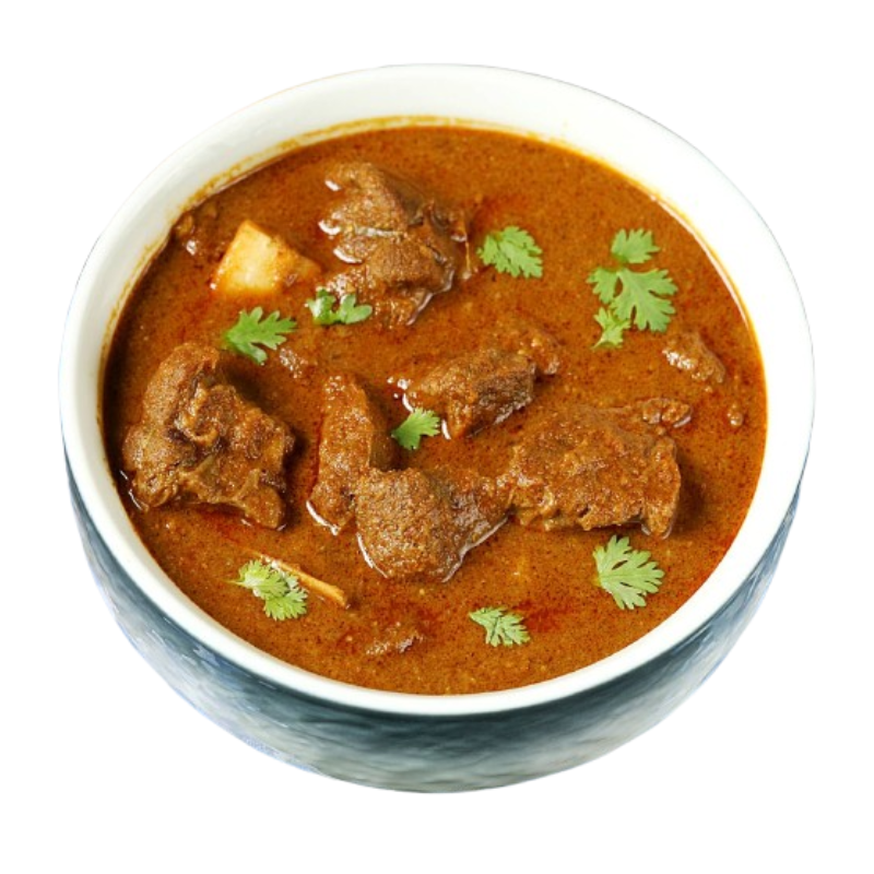 Fresh goat meat, Tomato puree, Cream, Yogurt marinade, Garlic & ginger, Garam masala, Turmeric, Coriander & cumin, Traditional Indian spice blend